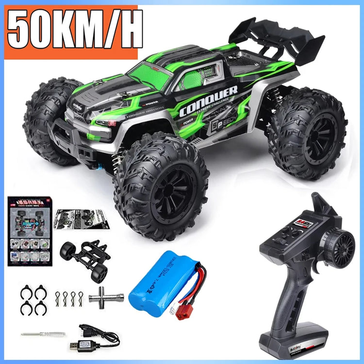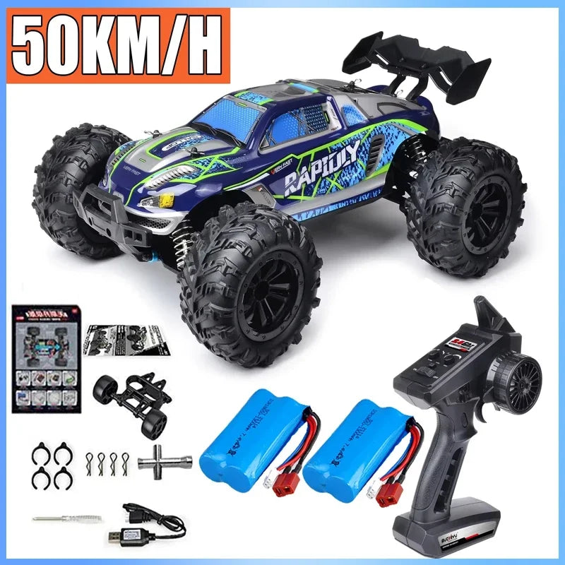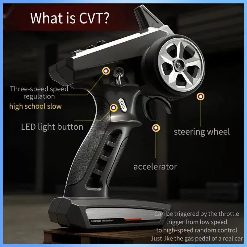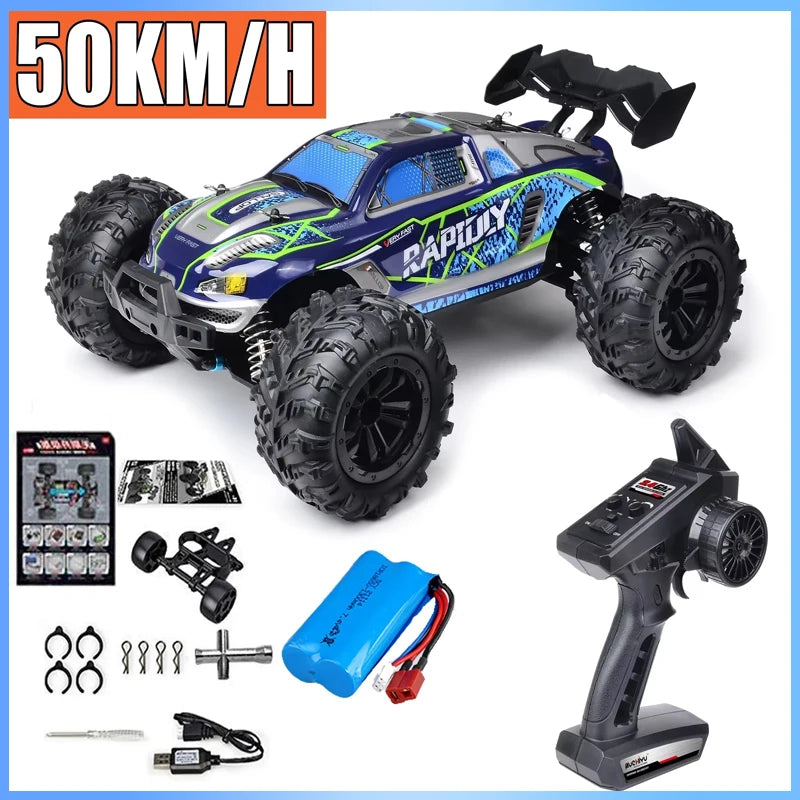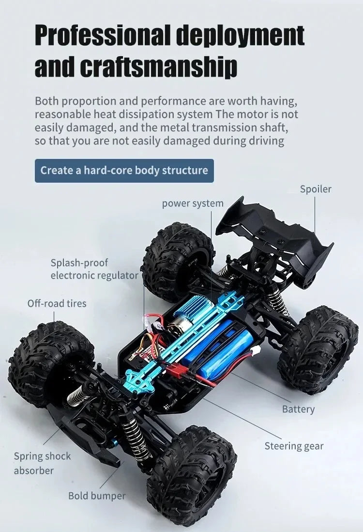 • 2.4G full proportional synchronous remote control system. Full throttle/steering;