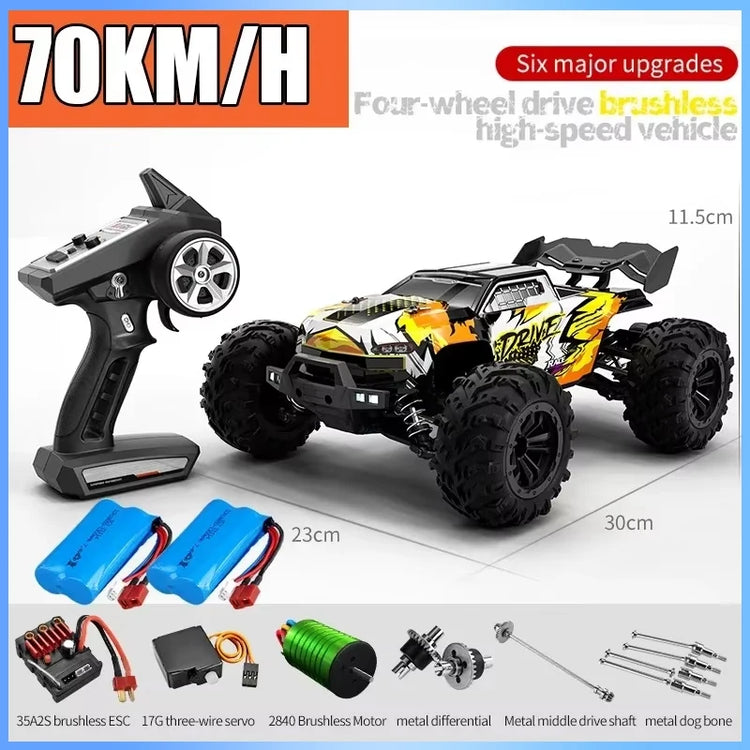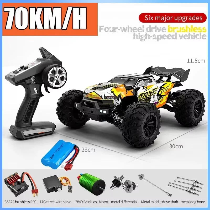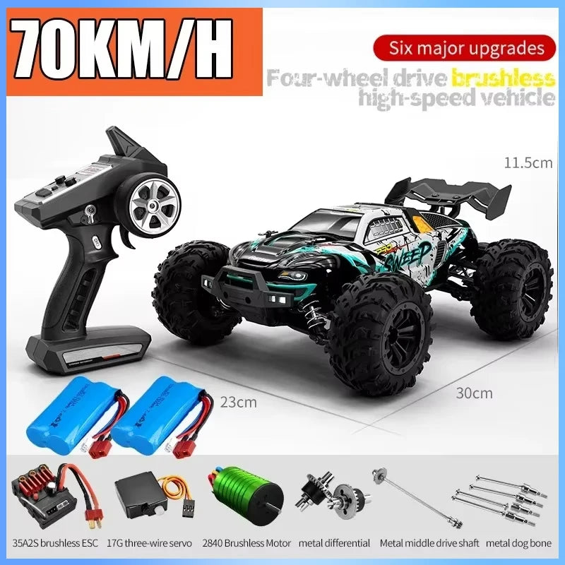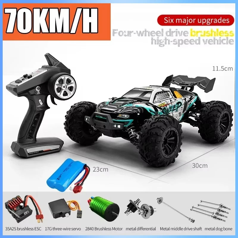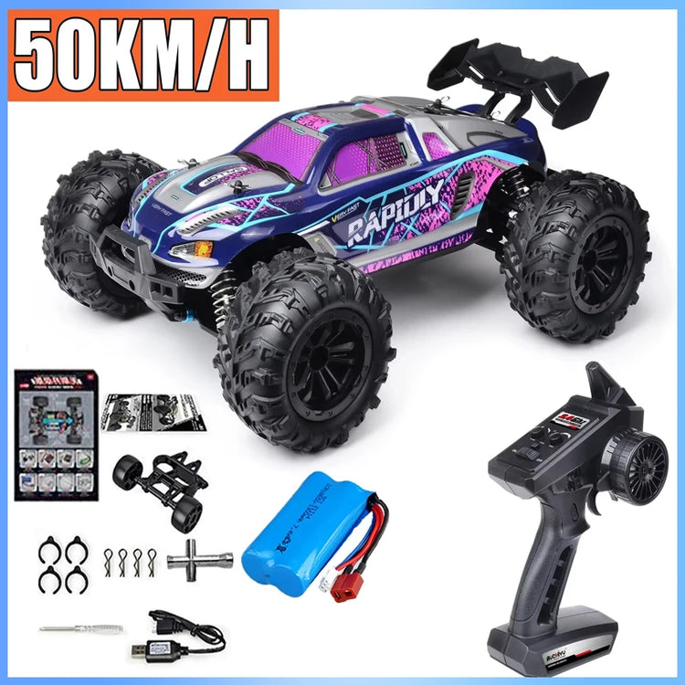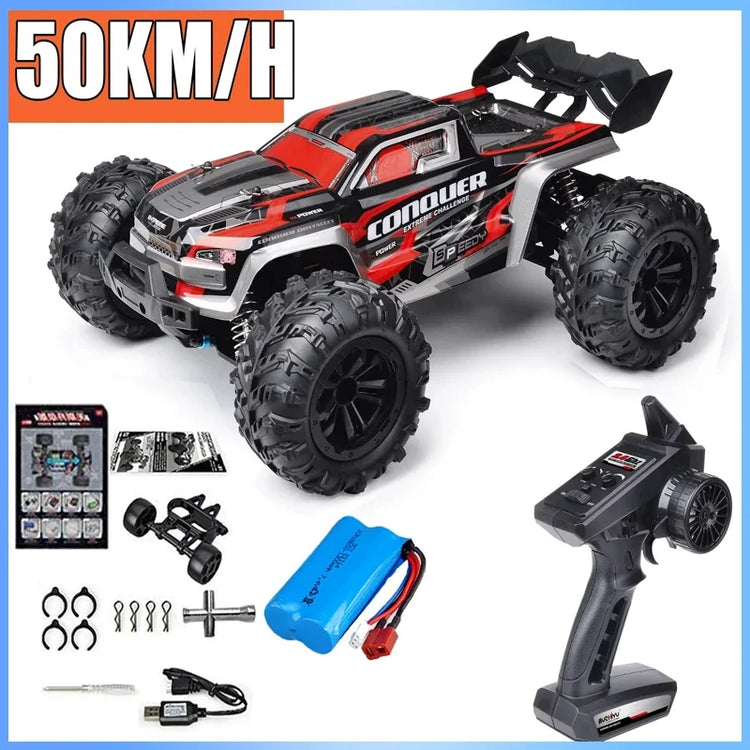 • 2.4G full proportional synchronous remote control system. Full throttle/steering;