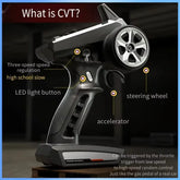 The car shell adopts a high-toughness explosion-proof PVC car shell. Equipped with an LED headlight (three-gear mode: steady on, slow blinking, and fast blinking). Using the simulation structure design, with the control feeling of the real car, to achieve full-scale continuously variable speed, high-speed driving, rapid acceleration, deceleration, braking, reversing, and left and right turns.